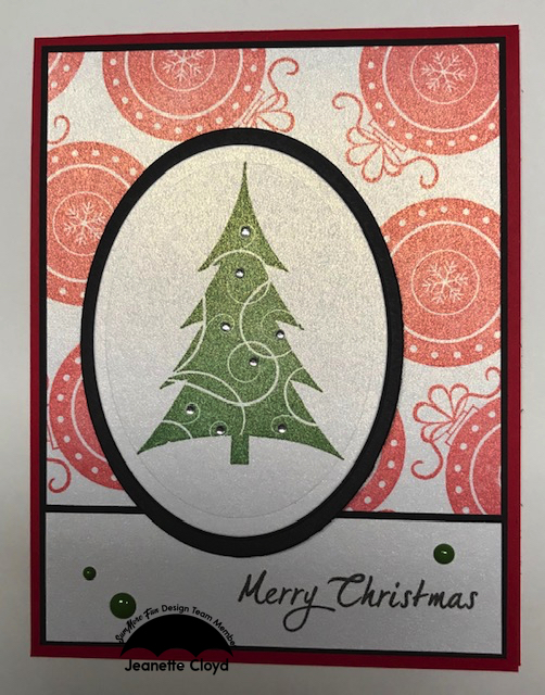 The poinsettia and pinecones from Dear Santa were stamped with Versafine Onyx Black ink and watercolored with Distress Inks. After they were dry, I cut them out with my Scan N Cut. The sentiment is from the Merry Nature stamp set and is also stamped in VF Onyx Black. The other items I used to create this card include GMD scalloped stitched rectangle dies, GMD Floral Frame dies, paper from TPS Rustic Noel, ATG, Foam tape, and red Pearl Pen.